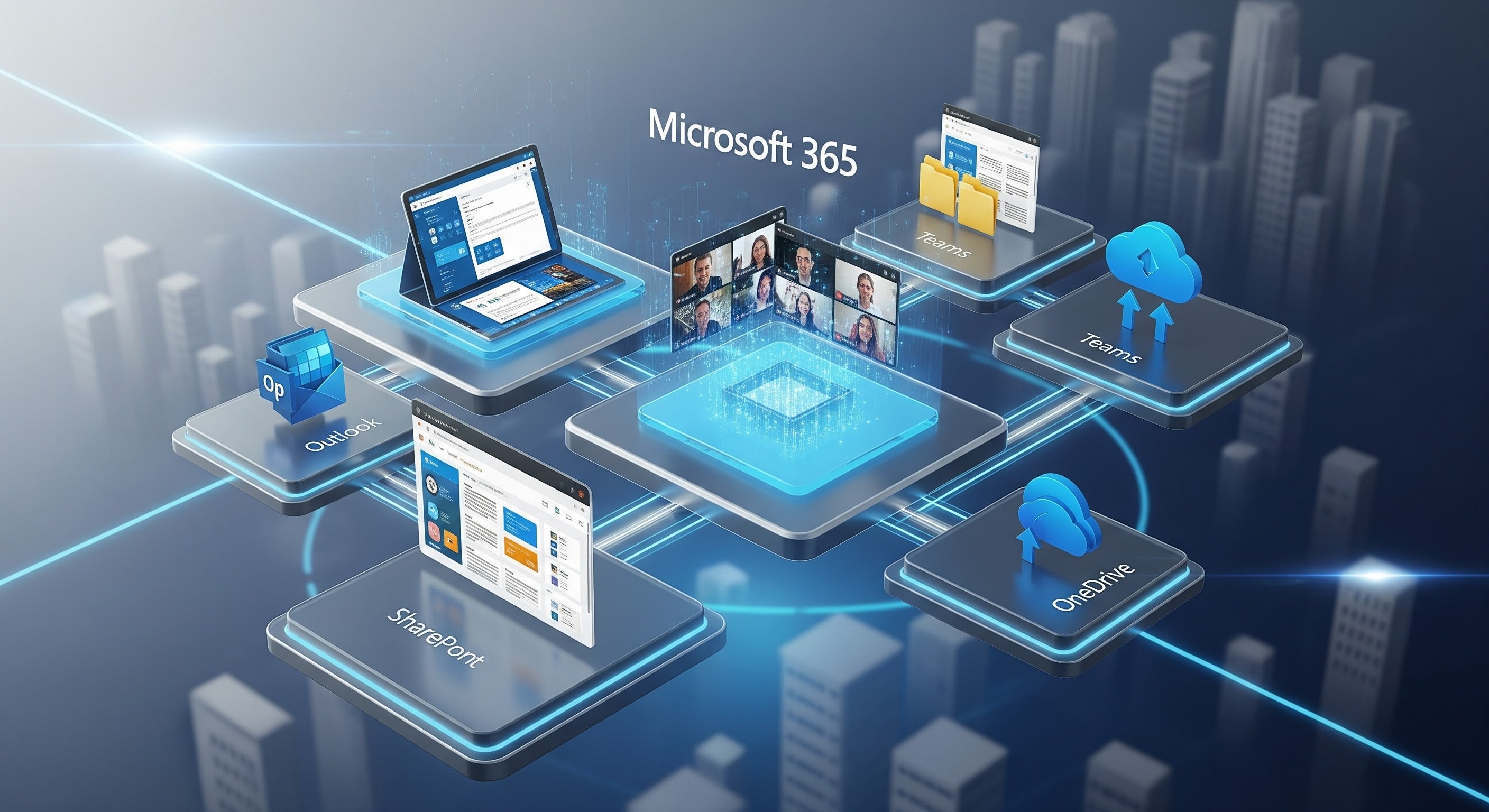 ชุดเครื่องมือครบวงจร เช่น Outlook, Teams, SharePoint และ OneDrive เพื่อเพิ่มประสิทธิภาพการสื่อสาร การแชร์เอกสาร และความปลอดภัยในองค์กร