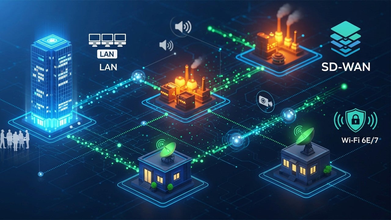 เรามอบประสบการณ์การเชื่อมต่อที่รวดเร็วและเสถียร ครอบคลุมทั้งสำนักงาน โรงงาน และสาขาระยะไกล ออกแบบโครงสร้างระบบ LAN, SD-WAN และเครือข่ายไร้สายระดับองค์กร (Wi-Fi 6/6E/7) ให้รองรับการทำงานแบบ Hybrid พร้อมโอนถ่ายข้อมูลได้แบบเรียลไทม์
