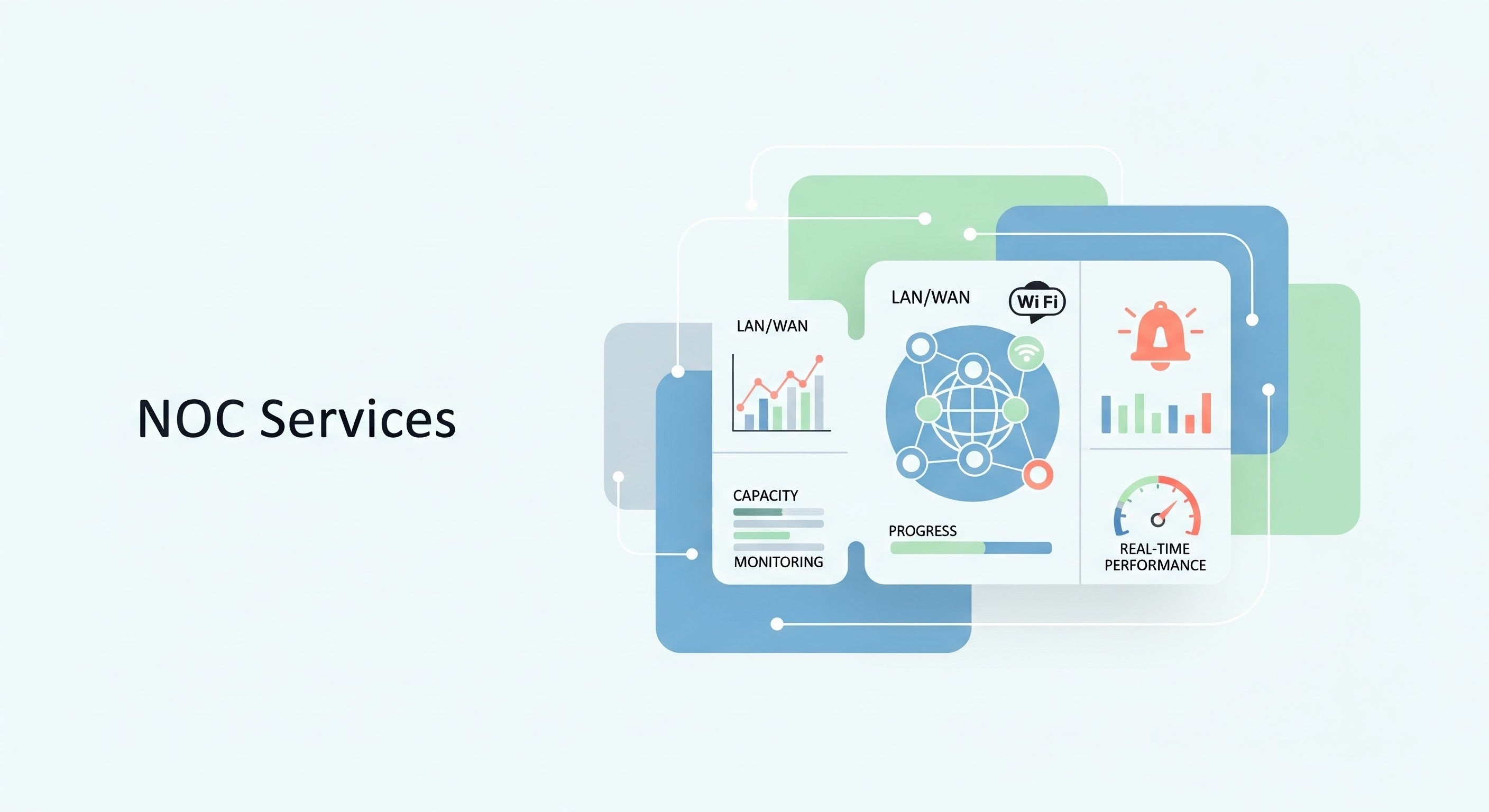 ศูนย์กลางดูแลเครือข่ายองค์กรแบบเรียลไทม์ ครอบคลุม LAN/WAN, Wi-Fi และการเชื่อมต่อ ติดตาม SLA, ความจุระบบ และแจ้งเตือนเชิงรุกเพื่อลด Downtime และเพิ่มประสิทธิภาพ